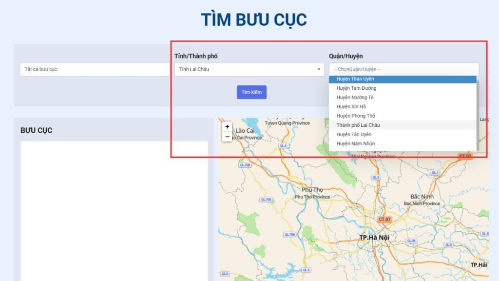 95 | 393545 | Bưu cục cấp 3 KHL Lai Châu | Đường Đại lộ Lê Lợi, Phường Tân Phong | TP. Lai Châu | Phường Tân Phong | 2133875678 |
