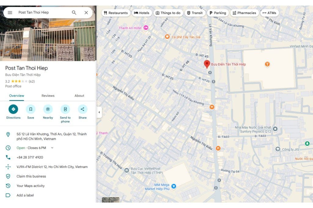 Bưu điện Tân Thới Hiệp có vị trí dễ tìm, bạn có thể di chuyển thuận lợi đến nhận và gửi bưu phẩm.