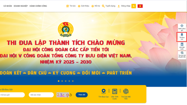 - Bước 1: Truy cập trang web chính thức của Vietnam Post (VNPost). Sau đó nhấp chọn Tìm bưu cục ở góc phải màn hình.