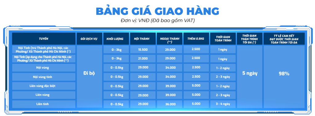 - Bảng mức giá và dịch vụ gia tăng có thể thay đổi theo hợp đồng giữa GHN và khách hàng.