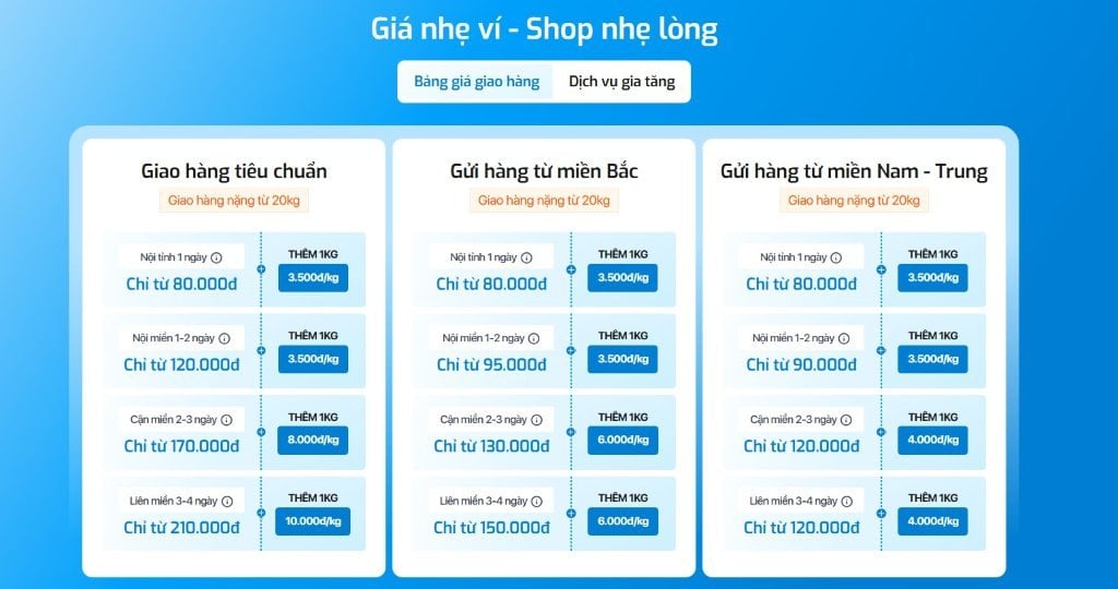 Bảng giá Giao Hàng Nhanh chi tiết cho hàng thông thường