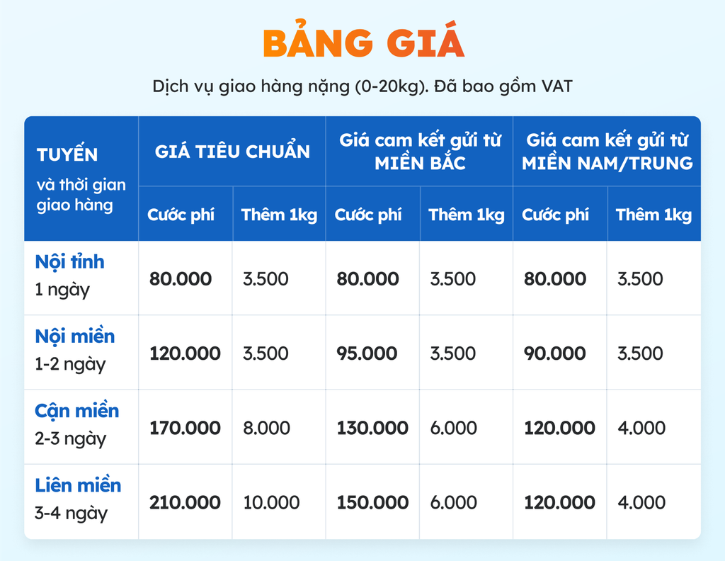 Bảng giá GHN cho đơn hàng nặng, cồng kềnh.