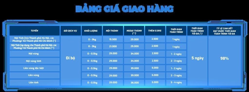 Bảng giá vận chuyển mới nhất, đang được GHN áp dụng.