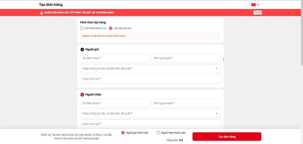 Chủ shop thuận tiện tạo đơn online trên website chính thức của J&T Express.