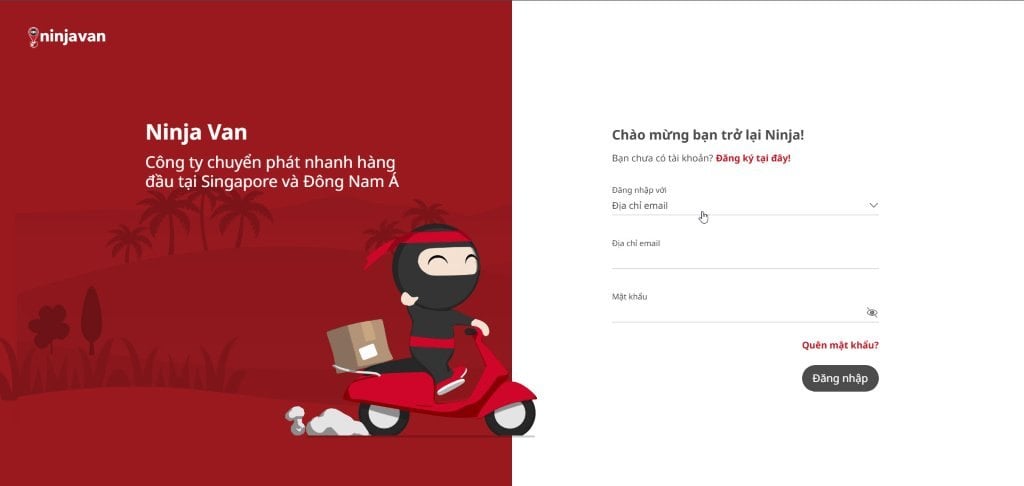 - Bước 1: Tạo tài khoản hoặc đăng nhập trên website dashboard.ninjavan.co.