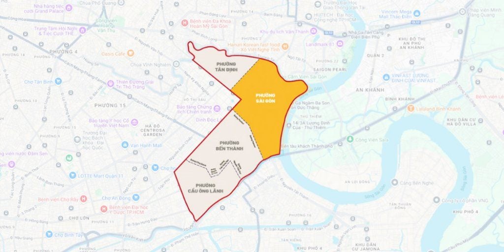 Tuy vậy, số lượng và ranh giới từng phường tại Quận 1 sau sáp nhập có nhiều “biến động”. Theo quy định, Quận 1 hiện có 4 phường là Tân Định, Bến Thành, Sài Gòn và Cầu Ông Lãnh. Bản đồ chi tiết quận 1 mới sau sáp nhập như sau: