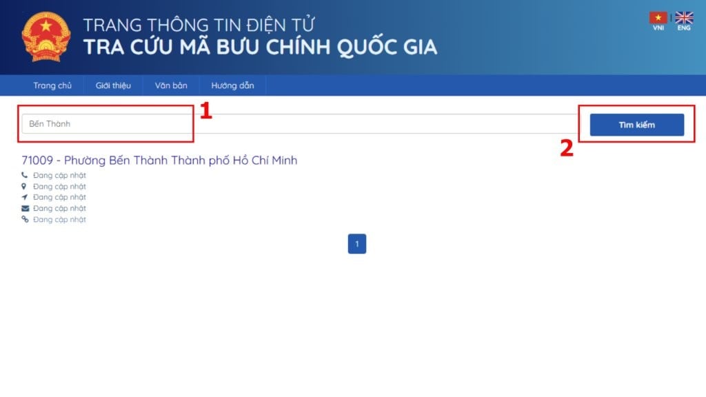 Minh họa cách tìm kiếm thông tin bưu chính phường Bến Thành Quận 1