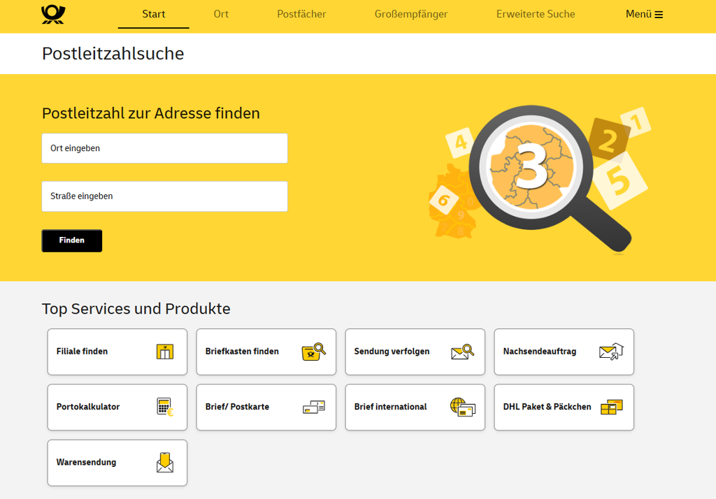 - Bước 3: Hệ thống sẽ tự động tìm kiếm và hiển thị mã bưu chính (PLZ) chính xác tương ứng với địa chỉ bạn đã cung cấp.