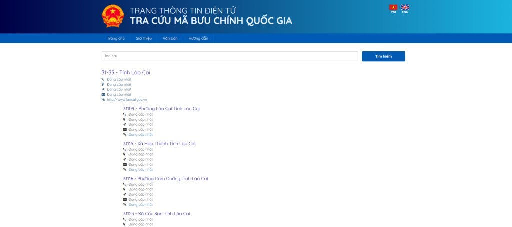 Để tra cứu mã postcode Lào Cai một cách chính xác và nhanh chóng, bạn truy cập Cổng thông tin điện tử rồi điền tên địa phương cần tra cứu. Sau đó, bạn nhấn vào nút “Tìm kiếm” hoặc Enter là có thể xem mã ZIP chi tiết. Dưới đây là hướng dẫn chi tiết các bước thực hiện: