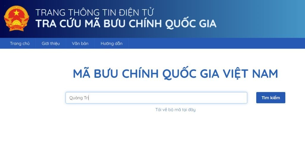 - Bước 1: Truy cập vào Cổng thông tin tra cứu Mã bưu chính quốc gia.
