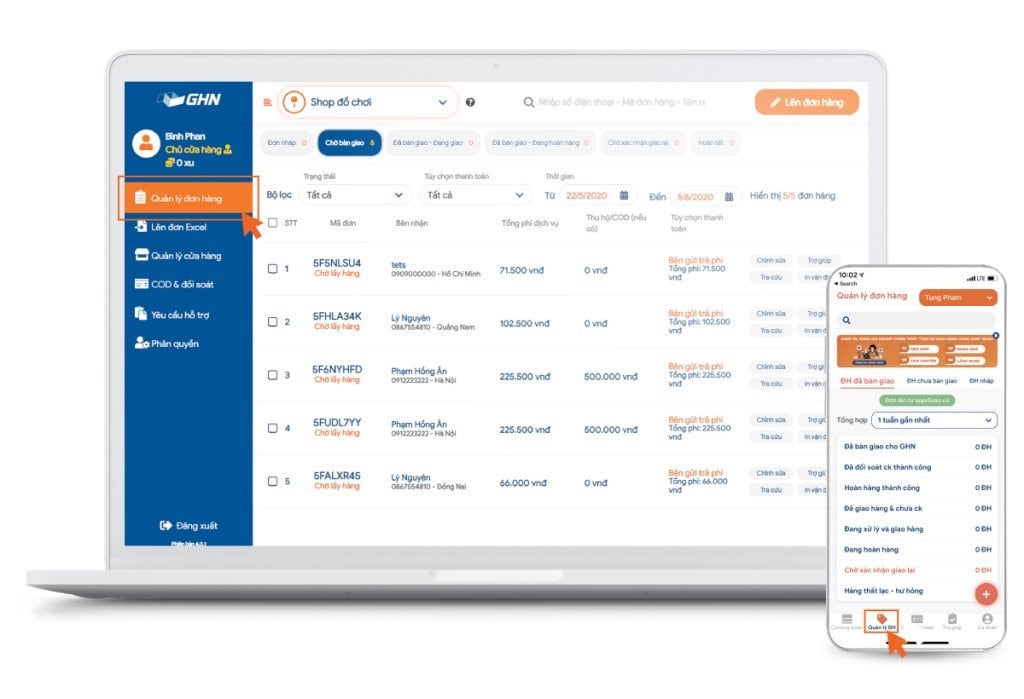Shop có thể dễ dàng theo dõi và cập nhật tình trạng đơn hàng mới nhất trên app/website của GHN.