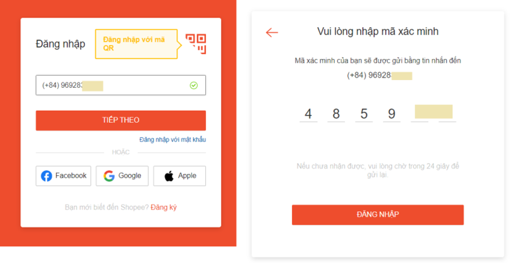 1.2 Đăng ký tài khoản bán hàng Shopee qua số điện thoại cá nhân