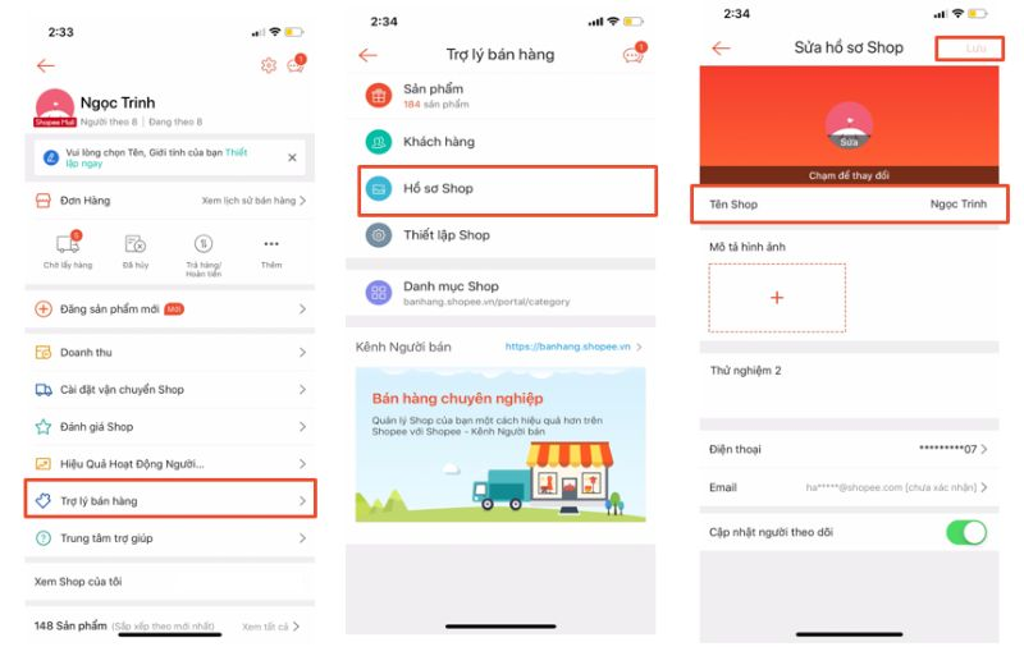 2. Các bước thiết lập thông tin gian hàng Shopee qua điện thoại