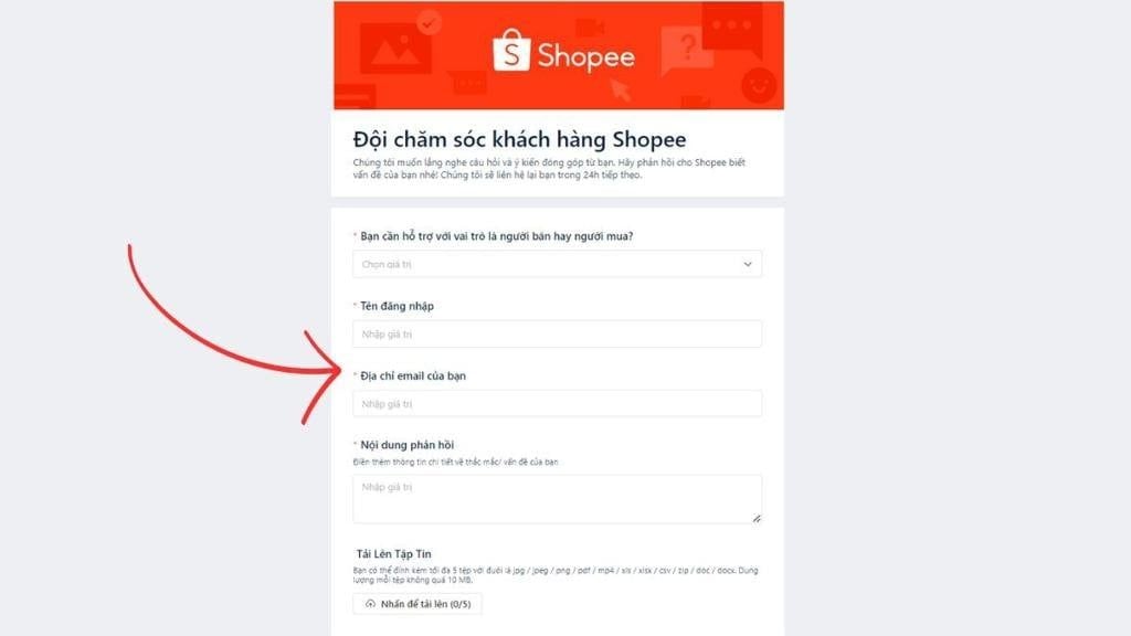 2.5. Gửi biểu mẫu yêu cầu chăm sóc khách hàng Shopee hỗ trợ