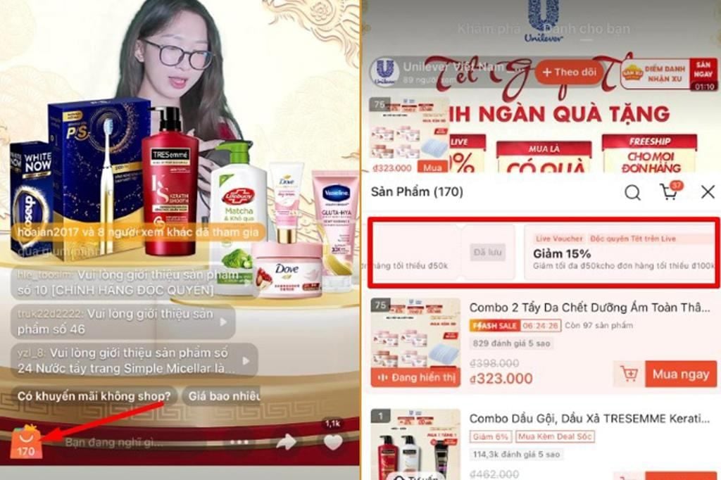 Bạn vào phiên livestream bán sản phẩm cần mua, nhấn vào biểu tượng giỏ hàng và nhấn ‘Lưu’ các voucher shopee 0đ hiện lên.