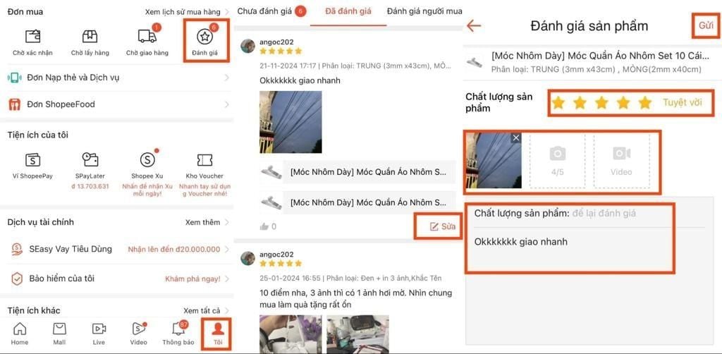 2.2 Cách sửa đánh giá trên Shopee cho người mua