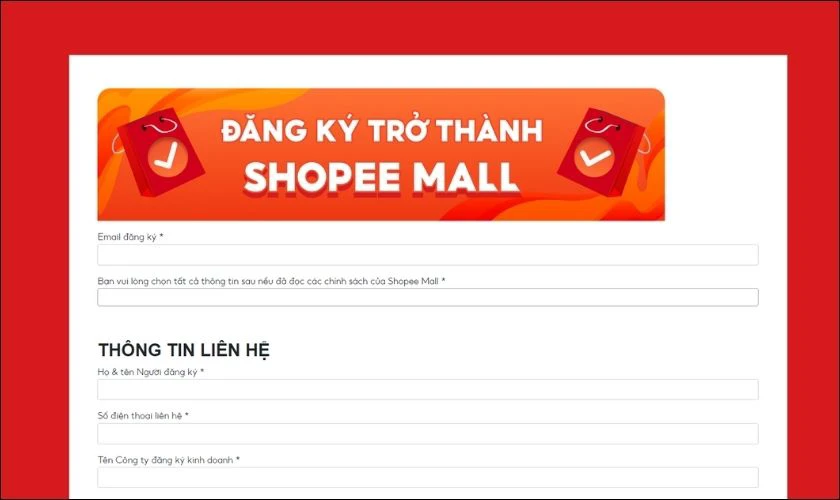 Bạn truy cập vào cổng đăng ký Shopee Mall và điền đầy đủ, chính xác các thông tin theo yêu cầu trong biểu mẫu. Hãy kiểm tra kỹ lưỡng thông tin trước khi nhấn nút gửi để tránh sai sót không đáng có.