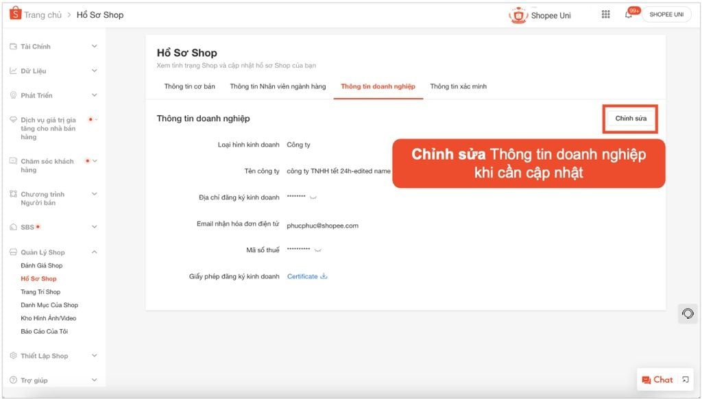 - Bước 3: Chủ shop nhấp chọn nút lệnh Chỉnh sửa ở góc phải.