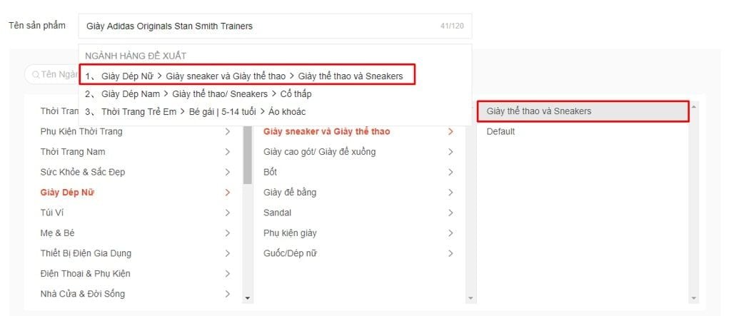 - Danh mục sản phẩm: Các chủ shop nên chọn đúng ngành hàng và càng chi tiết càng tốt. Bởi điều này sẽ giúp sản phẩm tiếp cận với nhiều khách hàng mục tiêu hơn.