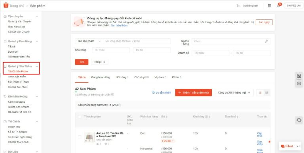 Bước 1: Truy cập vào Kênh Người Bán Shopee và chọn mục Quản lý Sản phẩm.