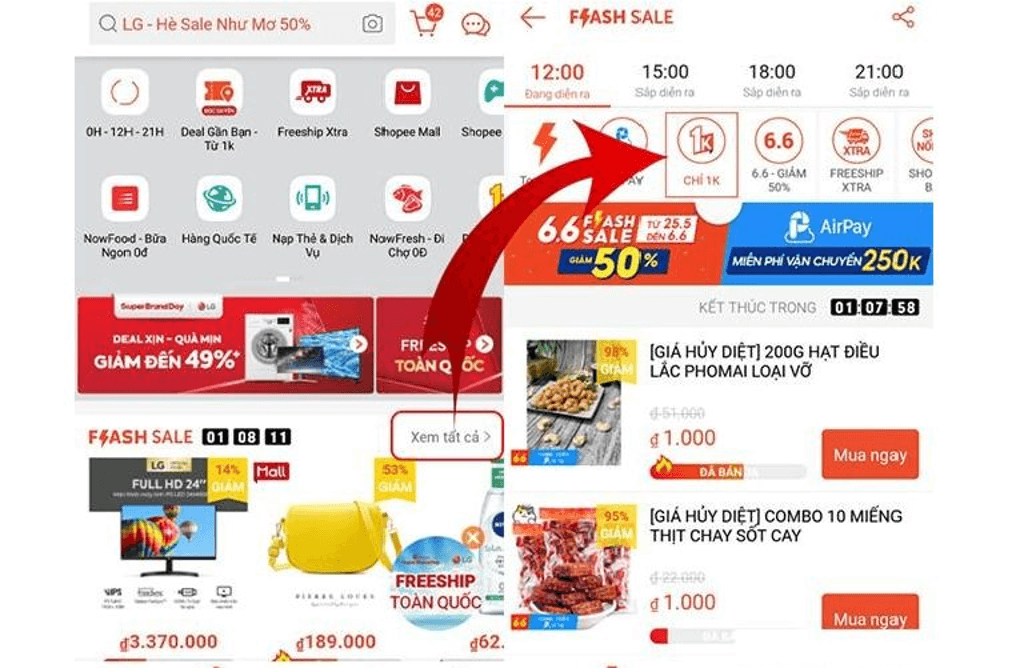 4. Gợi ý các khung giờ săn Sale Shopee 1k