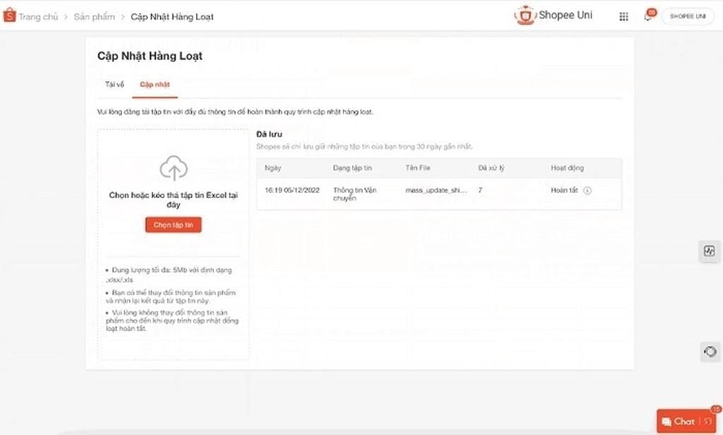 Tải lên file vừa chỉnh sửa là shop đã hoàn thành kích hoạt kênh ship Hỏa tốc cho hàng loạt sản phẩm.
