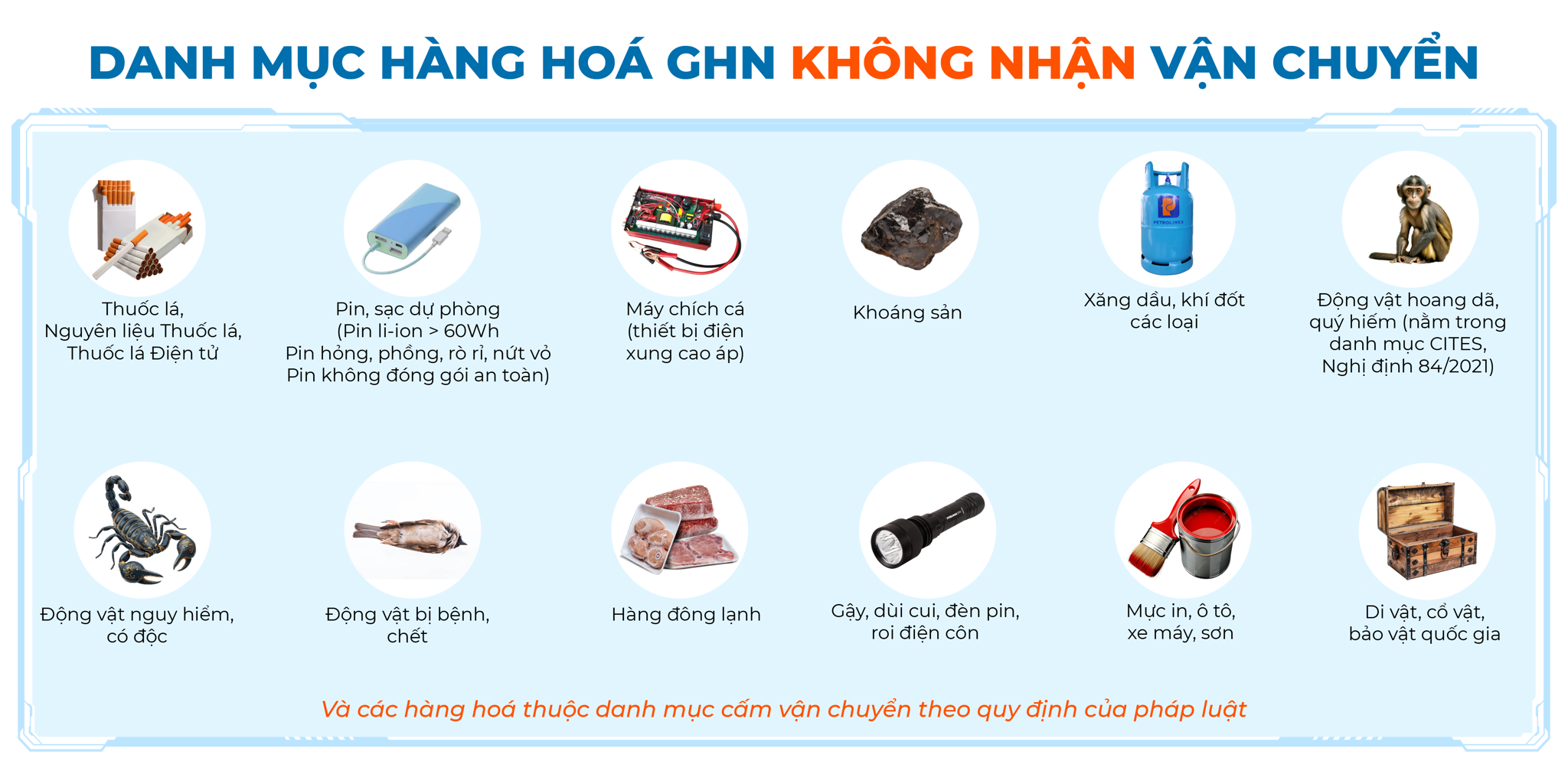 Danh sách này sẽ liên tục cập nhật theo sự thay đổi của quy định pháp luật và chính sách của Công Ty Cổ Phần Dịch Vụ Giao Hàng Nhanh (GHN).